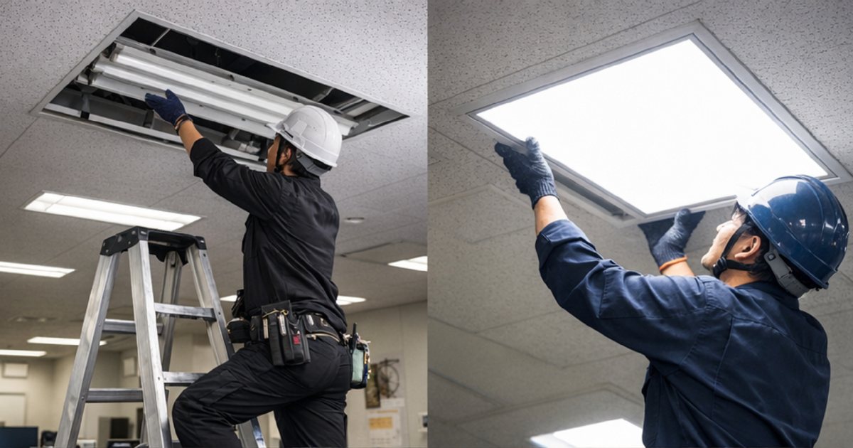 「蛍光灯特有のちらつきがなくなり、作業しやすくなりました。電気代も減って大満足です。」